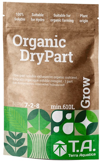 Organic DryPart ist ein vollständiger, 100 % löslicher, veganer Pulverdünger, der 2023/2024 von William Texier entwickelt wurde.
