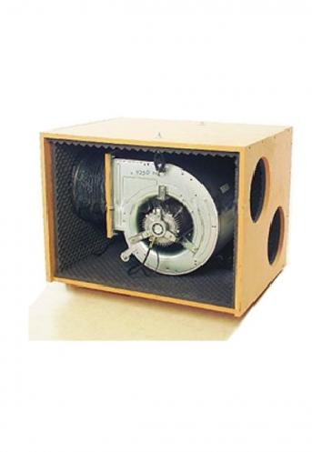 Silent Air Box 1200 m³/h aus MDF. Anschluss 250 mm mit freihängendem Schneckenhausventilator.